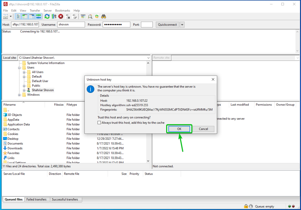 Как только вы узнаете IP-адрес своего Synology NAS, используйте клиент SFTP по вашему выбору для подключения к Synology NAS через SFTP.