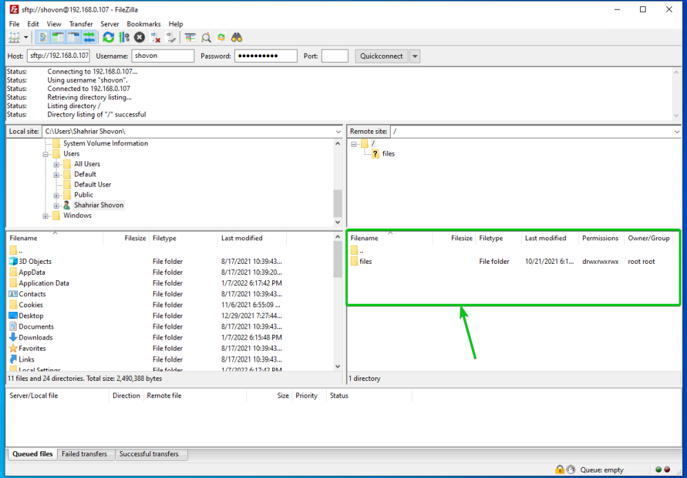 Использование FileZilla для доступа к общим папкам через SFTP: