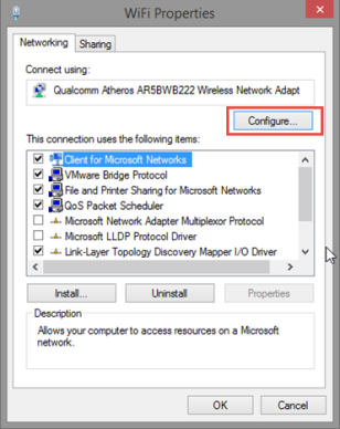 Окно « Свойства» предоставляет информацию о сетевых протоколах, используемых текущим сетевым подключением, и позволяет вам устанавливать, удалять или изменять их. Кроме того, он дает вам возможность настраивать дополнительные параметры сетевого адаптера. Для этого нажмите кнопку «Настроить».