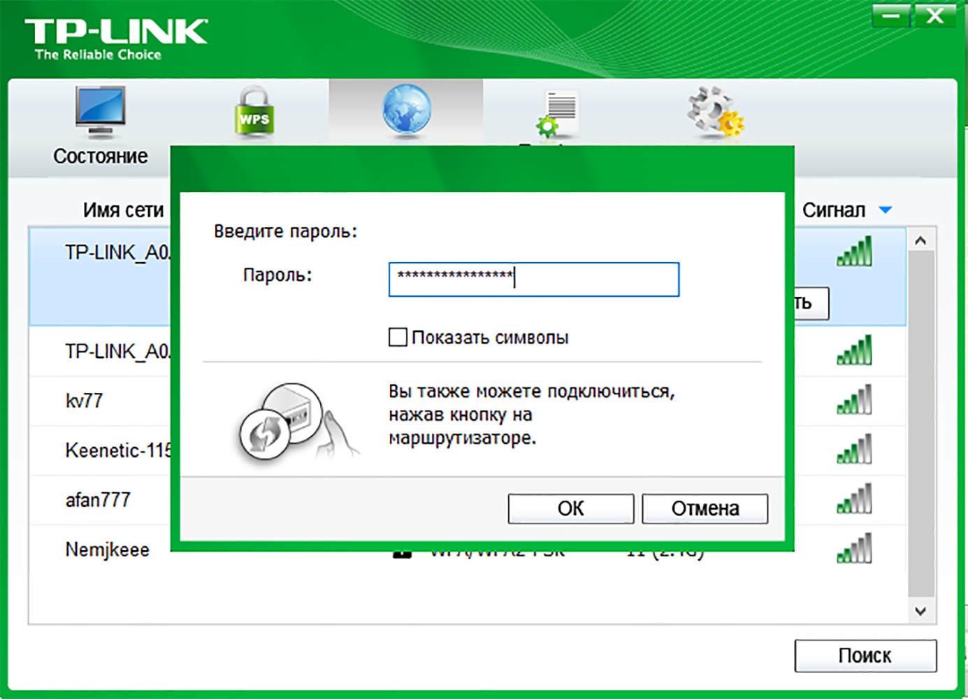 Использовать программу очень просто: достаточно открыть её интерфейс, перейти во вкладку «Сеть», найти своё подключение и ввести пароль.