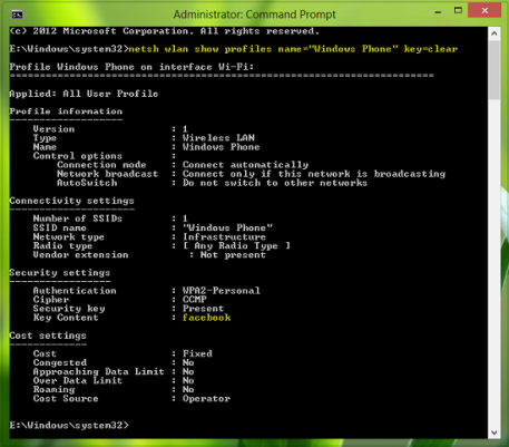 3. Теперь выполните следующую команду, чтобы очистить существующий ключ безопасности для этой конкретной беспроводной сети: