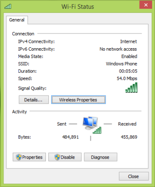 3. В разделе «Состояние WiFi», показанном ниже, нажмите «Свойства беспроводной сети».