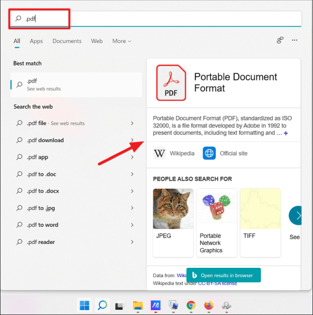 Затем вы можете попробовать выполнить поиск в этом формате файла (.pdf), и вы получите только результаты поиска в Интернете, а не с локального диска.