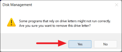 Когда вы увидите окно с предупреждением «Управление дисками», просто проигнорируйте предупреждение и нажмите кнопку «Да».