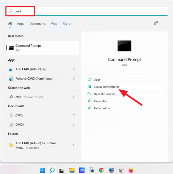 Сначала откройте окно командной строки с правами администратора. Для этого выполните поиск по запросу «Командная строка» или «cmd» и нажмите «Запуск от имени администратора» справа.