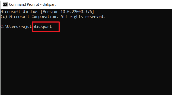 Откройте командную строку, введите diskpart и нажмите, Enterчтобы запустить утилиту Diskaprt.