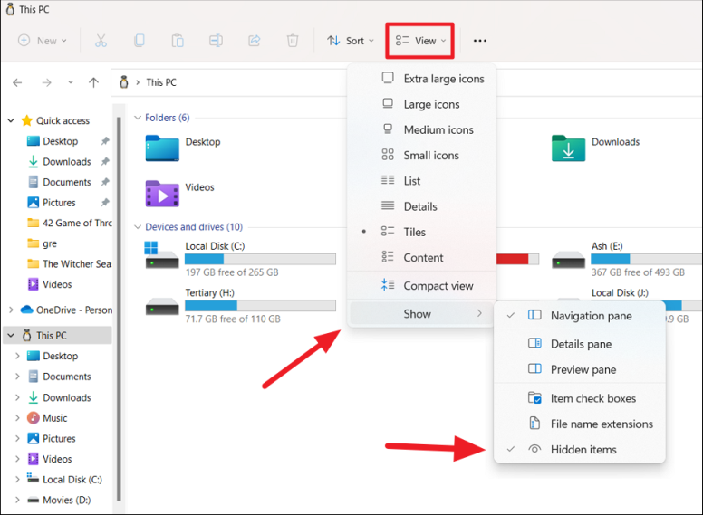 Так же, как есть несколько способов скрыть файлы, папки и диски в Windows 11, есть несколько способов показать или показать скрытые файлы и папки.