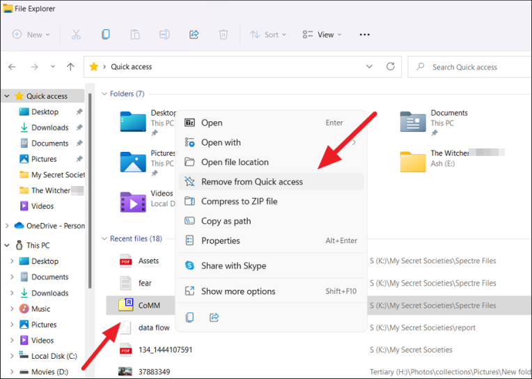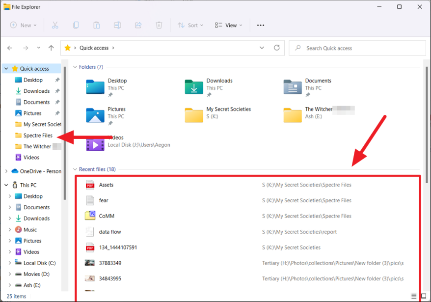 Предположим, вы недавно получили доступ к своим скрытым файлам и папкам и снова скрыли их, но люди, имеющие доступ к вашему компьютеру, могут легко получить к ним доступ через «Быстрый доступ» в проводнике и «Рекомендуемый раздел» в меню «Пуск». Быстрый доступ — это область в проводнике, которая обеспечивает более быстрый доступ к наиболее часто используемым папкам и недавно использованным файлам. Даже после того, как вы скроете ваши файлы, другие пользователи, у которых есть доступ к вашему компьютеру, смогут узнать, какие файлы вы использовали в последнее время и где они находятся.