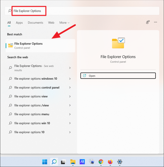 Кроме того, вы также можете выполнить поиск «Параметры проводника» в поиске Windows и выбрать верхний результат, чтобы открыть диалоговое окно «Параметры проводника».