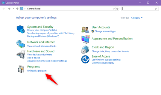 Откройте панель управления (быстрый способ сделать это — найти ее) и нажать ссылку «Удалить программу» в разделе «Программы».