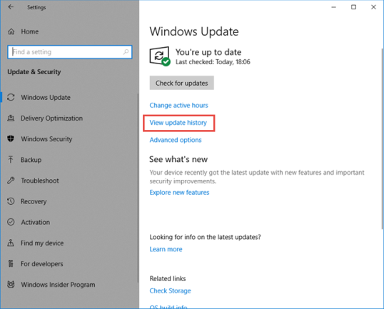 На странице Центра обновления Windows нажмите или коснитесь «Просмотреть историю обновлений».