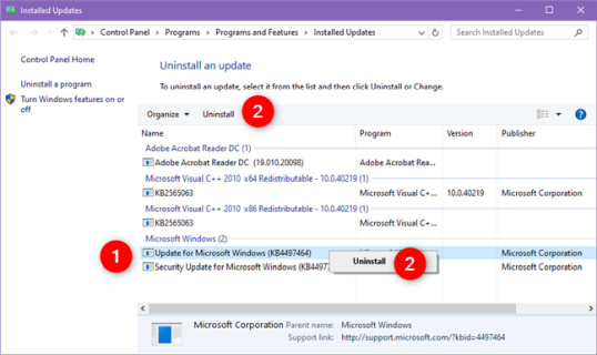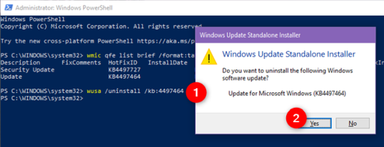 В качестве примера предположим, что мы хотим удалить обновление KB4497464. Для этого нужно набрать: wusa /uninstall /kb:4497464. Нажмите Enter на клавиатуре, и Windows 10 загружает диалоговое окно, в котором спрашивается, уверены ли вы, что хотите удалить это обновление. Нажмите или коснитесь Да, или нажмите клавишу Y на клавиатуре, чтобы подтвердить действие.