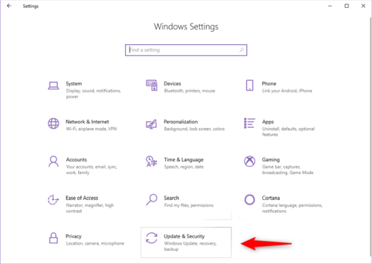 Запустите приложение «Настройки», нажав на кнопку в меню «Пуск». В приложении «Настройки» перейдите в раздел «Обновление и безопасность».