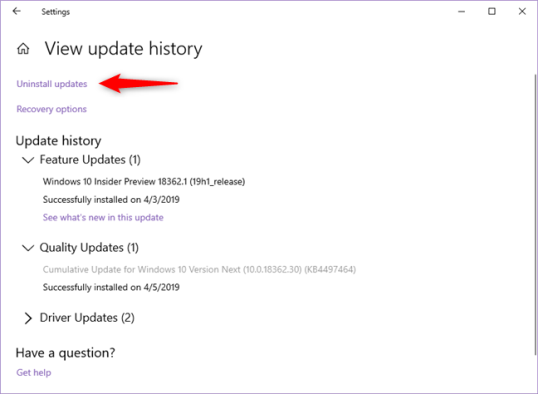 1. Удалите обновления Windows 10 из приложения «Настройки».