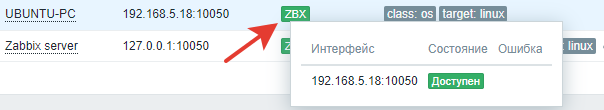 Через пару минут проверяем состояние хоста на сервере. Агент доступен.