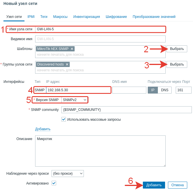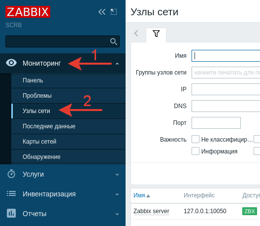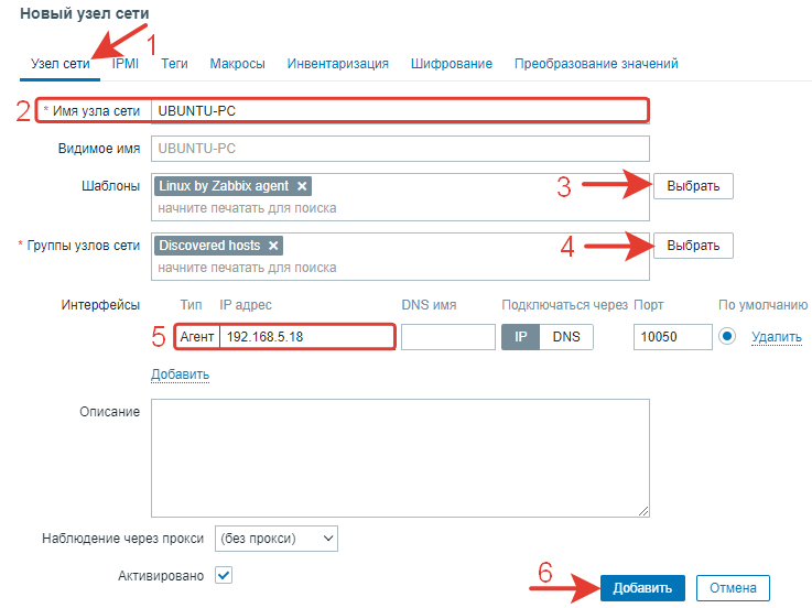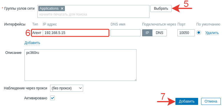 Добавляем группу и IP-адрес хоста с установленным агентом.