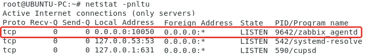| PidFile=/run/zabbix/zabbix_agentd.pid LogFile=/var/log/zabbix—agent/zabbix_agentd.log LogFileSize=0 Server=192.168.5.120 ListenPort=10050 ServerActive=192.168.5.120 Hostname=UBUNTU—PC |