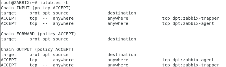 | iptables —A OUTPUT —p tcp —dport 10050 —j ACCEPT iptables —A INPUT —p tcp —dport 10050 —j ACCEPT |