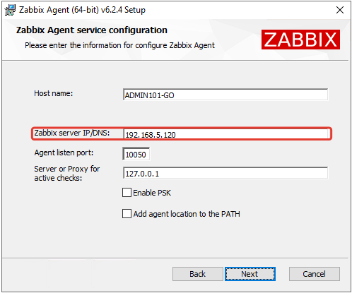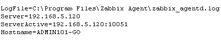 Hostname=ADMIN101-GO имя ПК, должно соответствовать написанному в Zabbix-сервере.