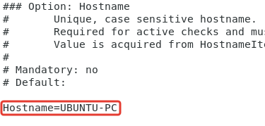Находим строку #HostName= раскомментируем ее (убираем #) и указываем актуальное имя ПК на котором агент.