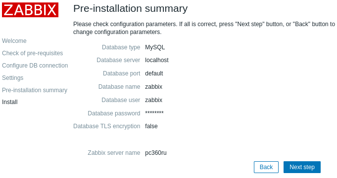На следующем шаге указываем IP-адрес сервера Zabbix.