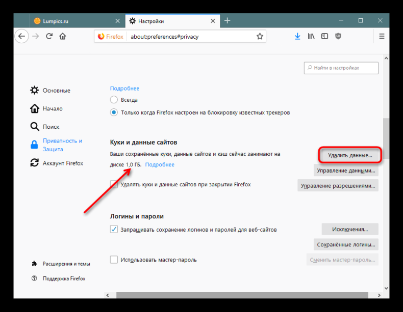 В кэше обозревателей сохраняются файлы, которые позволяют быстро загружать страницы, посещённые ранее. Его тоже нужно чистить время от времени. Если этого не делать, системный диск будет забиваться ненужной информацией, а браузер сильно тормозить. Для удаления файлов зайдите в настройки браузера и найдите там раздел с кэшем и файлами куки, нажмите «Очистить кэш».