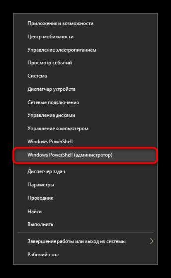 - Запустите PowerShell с правами «админа»: кликните правой клавишей мышки по «Пуску» в левом нижнем углу экрана. Выберите запуск PowerShell с правами администратора.