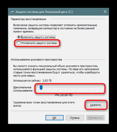 В «Виндовс» можно сохранять точки восстановления, до которых впоследствии можно делать откат, если вдруг в системе возникли какие-то сбои. Эти точки, естественно, занимают место на жёстком диске. Удалите эти точки, если ваша система работает стабильно, предварительно создав одну новую.