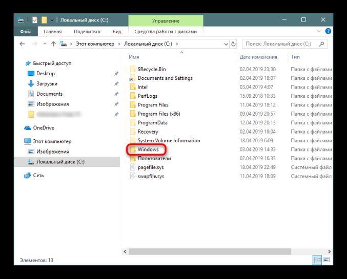 - Зайдите в «Проводник Виндовс». Откройте в системном локальном диске каталог Windows.