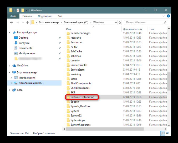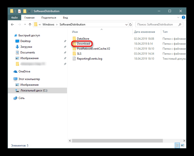 - Перейдите в папку SoftwareDistribution.