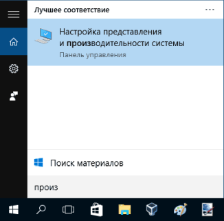 В «Поиске» наберите слово «производительность», а затем щёлкните по пункту «Настройка представления».