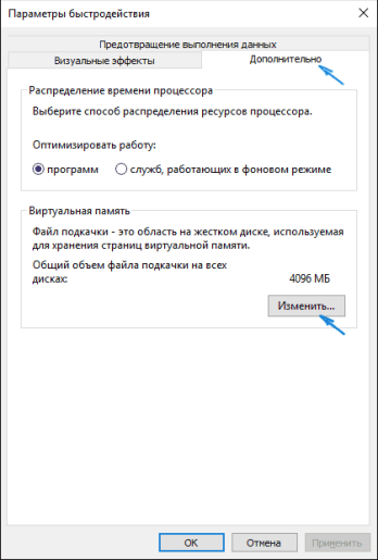 Выключение или уменьшение файла подкачки