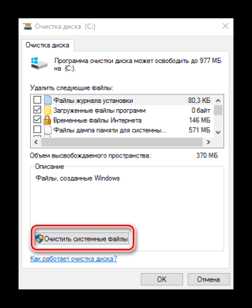 - В окне «Очистка диска» нажмите на элементе «Очистить системные файлы».