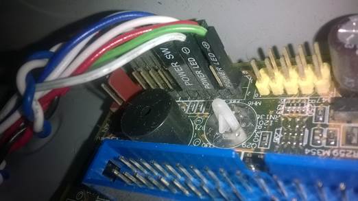 Прежде чем вытащит мат. плату из корпуса, желательно сфотографировать места подключения проводов кнопки питания, сброса и диодов, чтоб потом не гадать где они были. Очень часто на платах отсутствуют подписи назначений штырьков.