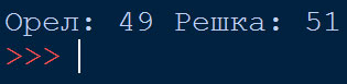 print('Орел:',orel_sum,'Решка:',reshka_sum)