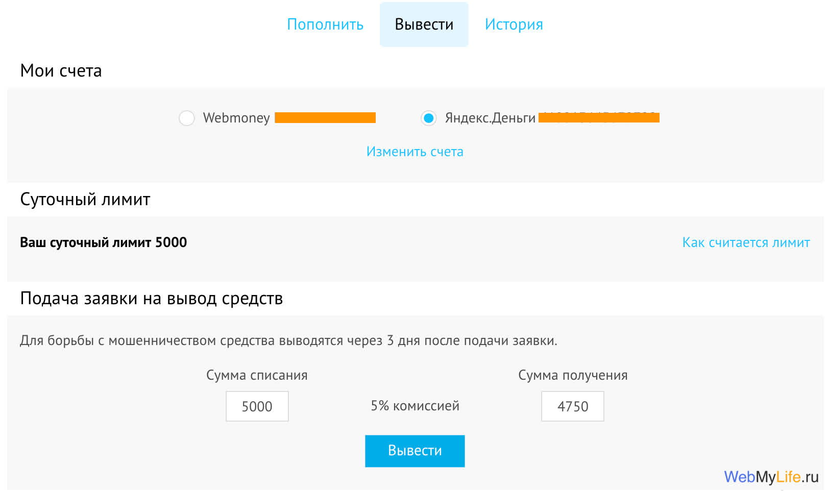 5. Ограничение на сумму вывода средств и трехдневный срок ожидания их поступления.