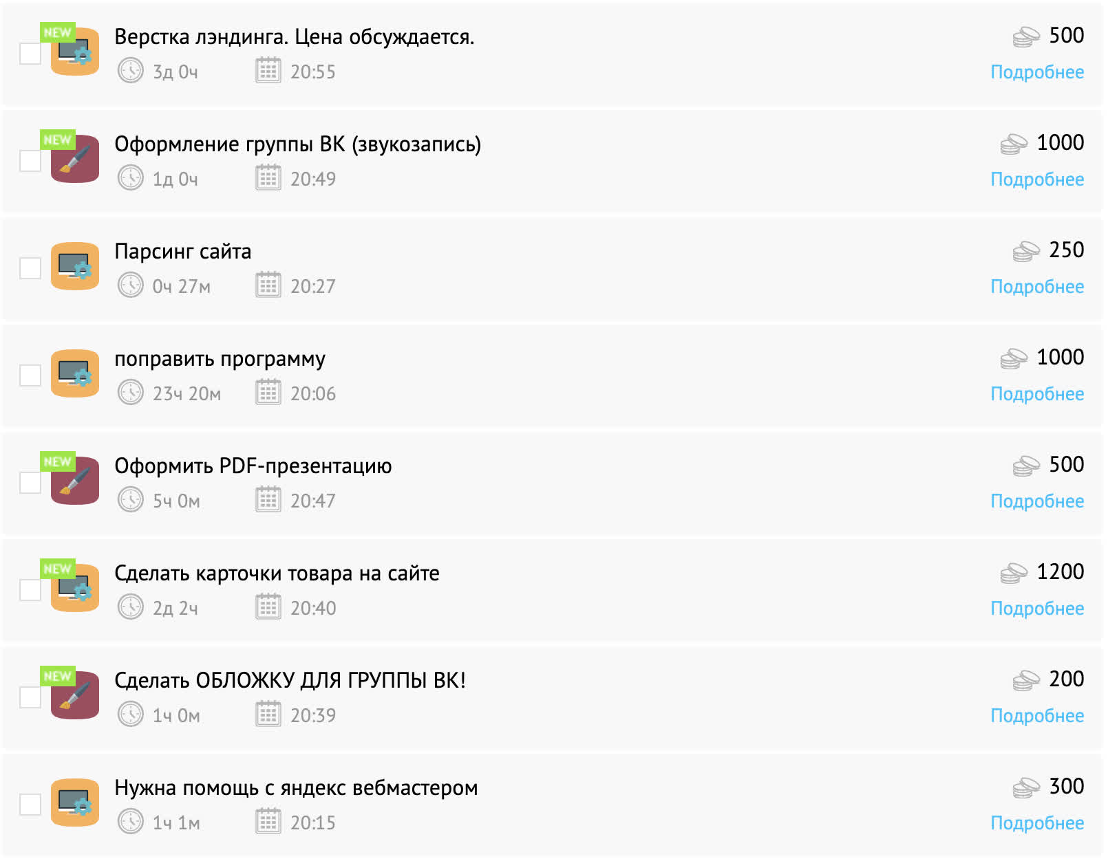 Далее начинаем просматривать список заданий. Важно! На этом этапе Вам нужно будет откликаться на все задание, которые можете осилить. Не нужно отправить заявку на одно и сидеть ждать ответа – потеряете время, а то что выберут именно Вас – далеко не очевидно.