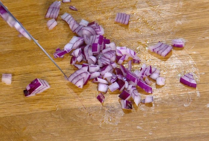 Если лук не сладкий, ошпарьте его кипятком или замаринуйте в уксусе.