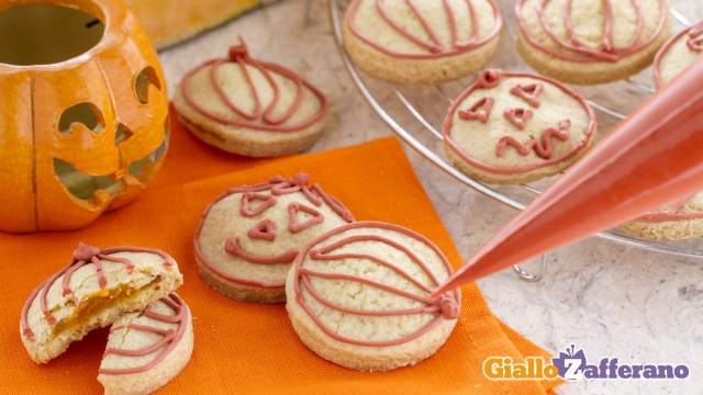 Рецепт «Ведьмино» печенье с тыквой, пошаговый рецепт с фото.«Ведьмино» печенье с тыквой, пошаговый рецепт с фото.«Ведьмино» печенье с тыквой — это одно из сладостей, представляющая собой часть кулинарной традиции Хэллоуина именно потому, что он приготовлено из овоща, который символизирует этот праздник — из тыквы. Лакомая и нежная начинка из тыквы заключена между двумя кругляшками из песочного теста; заключительный штрих состоит в том, чтобы украсить ваше «ведьмино» печенье из тыквы так, чтобы придать ему устрашающий вид: при помощи ярко-оранжевой глазури придать им сходство с маленькой круглой тыковкой или же классическим изображением тыквы Хэллоуина. Приготовить «ведьмино» печенье с тыквой очень просто и быстро, именно поэтому это отличный рецепт для детских вечеринок.Ингредиенты Для песочного теста:Мука — 300 гр.Сахар — 150 гр.Сливочное масло — 125 гр.Лимон — тёртая кожура 1 лимонаЯйцо — 2 желтка, 1 целое яйцо Для начинки:Мякоть тыквы — 300 гр.Сахар — 50 гр.Вода — 100 мл.Лимон — тёртая кожура 1 лимона Для глазури:Яйцо — белок 30 гр.Сахарная пудра — 50 гр.Лимон — несколько капель сокаПищевой краситель — ярко-оранжевый (по вкусу)Длительность приготовления:120МинутСложность приготовления:Средней сложностиКоличество проций:4Процесс приготовления:DariaL