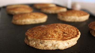 - Жарим овсяные блины с миндалем и бананом с каждой стороны по 3-4 мин.