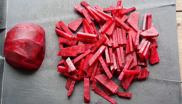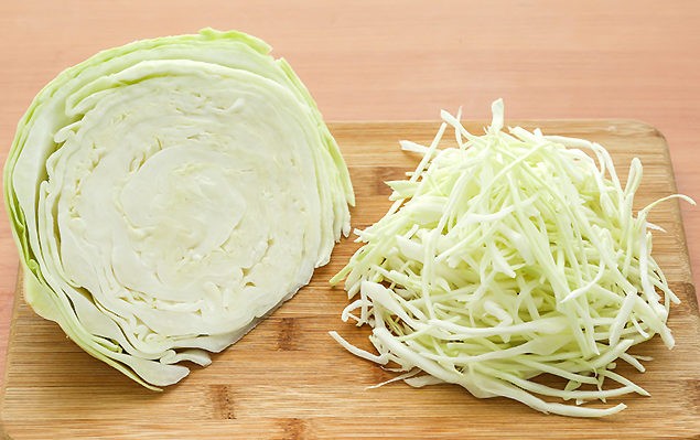 Основная сложность при приготовлении закусок из капусты – это процесс нарезки. Шинковать нужно тонко и равномерно. В этом рецепте этот этап исключен, поскольку капуста маринуется кусочками.