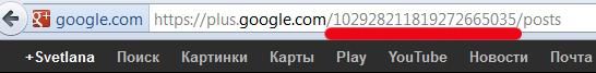 2. Разместите в своем блоге ссылку на свой Google+ профайл. Это можно сделать разными способами, но прежде всего вам надо узнать ID вашего Google+ профиля. Кликаем по вот такой ссылке: https://plus.google.com/me попадаем в свой Г+ профайл и выясняем его идентификатор идентификатор.![]()