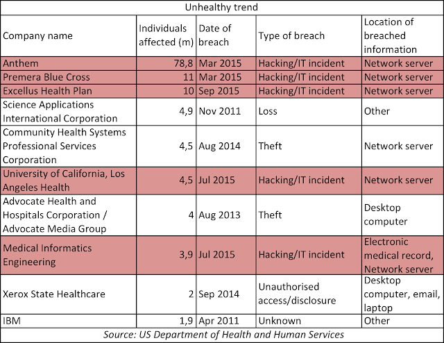 На днях журналисты Financial Times со ссылкой на министерство здравоохранения и социальных служб США сообщили, что в течение уходящего года хакерами была похищена медицинская информация более чем 100 млн клиентов.