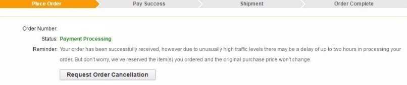 Из-за большого количества заказов проверка платежа может продлиться дольше, чем обычно, и уведомление от банка может придти позже. Если в статусе заказа сказано «Платёж обрабатывается», значит, уже работают над вашим заказом. Рекомендуем вам проверить статус заказа через несколько часов.