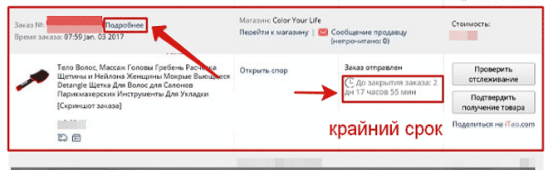 Однако возможность оспорить сделку ограничена крайним сроком, который установил продавец по данному заказу. В течение оговоренного времени селлер обязуется доставить товар клиенту. В свою очередь, покупатель, получив посылку, должен подтвердить этот факт в разделе «Мои заказы». После чего сделка автоматически закрывается: считается, что клиент не имеет никаких претензий, а продавец получает свои деньги.