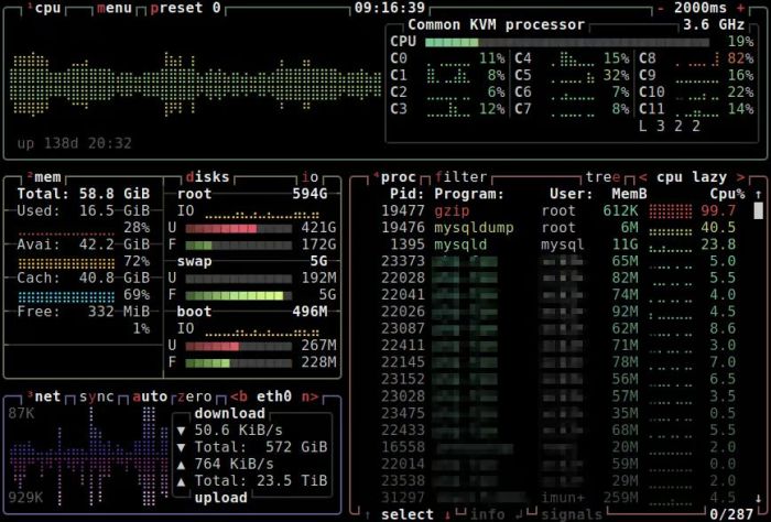 btop — это универсальный и эффективный инструмент для мониторинга системы, который сочетает в себе функциональность и удобный дизайн.