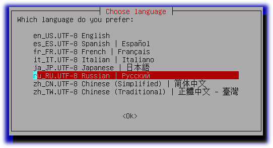 Далее выбираем язык, с помощью которого Clonezilla будет с нами общаться. Можно смело выбирать «великий и могучий» — работает вполне адекватно.