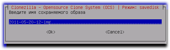 Вводим имя сохраняемого образа. Это имя — не только идентификатор образа, но и имя каталога, в котором будут сохранены все файлы из состава образа диска (их будет несколько)