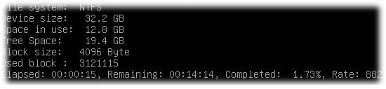 Далее утвердительно ответим на запрос подтверждения того, что мы действительно готовы начать операцию снятия образа с диска и увидим сводный экран текущего состояния этого процесса…