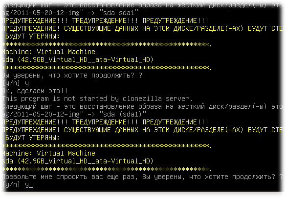 Далее, нас несколько раз предупредят о том, что все данные на целевом диске будут уничтожены в процессе восстановления образа